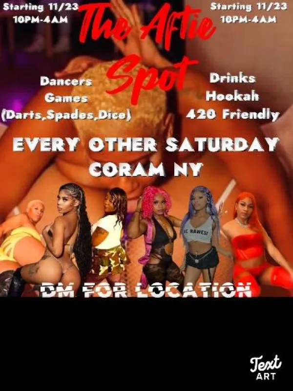 EVERY OTHER SATURDAY STARTING 11/23 call or text for more info- DM on Instagram for Address @TheAftieSpot EVERYONE FREE ENTRY UNTIL 11PM MEN $20 at door🔞21+ WOMEN $10 at door🔞21+ SAT 11/23 LINE UP BELOW👯♀❤👯♀❤ GIRLS ARE FULL SERVICE💦💦 •SECURITY ON PREMISIS⛓💥 •NO PIMPS🚫 •NO LAW ENFORCEMENT🚫 •NO THUGS🚫 •NO WEAPONS🚫 •NO AGGRESSIVE MEN🚫 IF RULE ARE BROKEN YOU WILL BE ESCORTED OUT GIRLS IF YOURE INTERESTED IN DANCING DM US📲